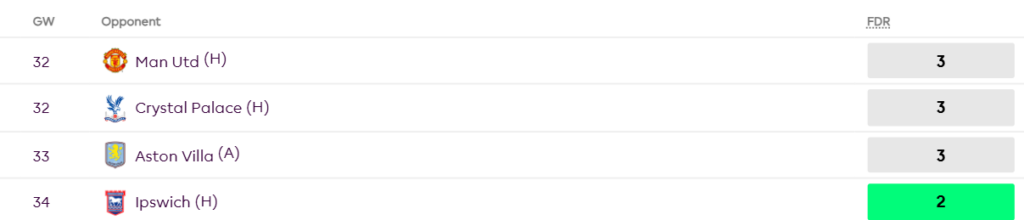 - GW38- Amorim vs AVL(H) or a Team who are fighting to save against relegation on the final day vs a Team who don’t have anything to play for like Wolves vs BRE(H) or Ipswich vs WHU(H).