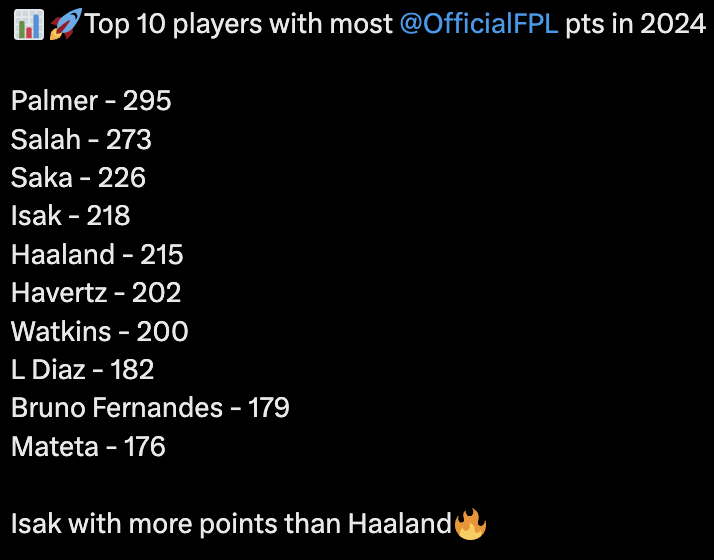 Palmer on the other hand has been a bit quieter in recent weeks, producing just 1 attacking return in his last 4 games with Chelsea. That being said, his xGI in those games has been, on average, well above 0.5xGI/90. This week his team face Crystal Palace away, a great opportunity for him, and Chelsea, to get themselves back to the heights they were hitting last year and start 2025 off in the best way possible!