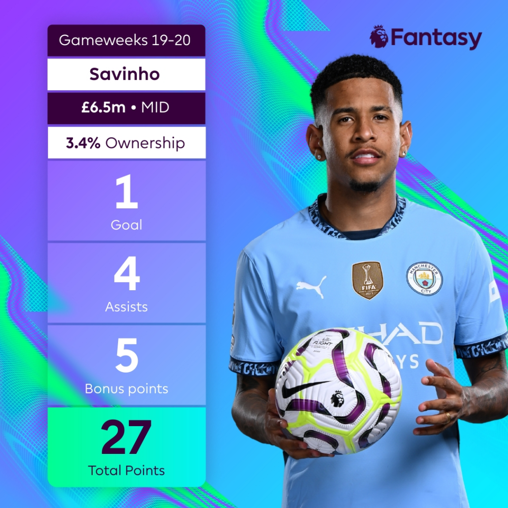 Savio – Manchester City – 6.5 Midfielder – 3.6 % TSB