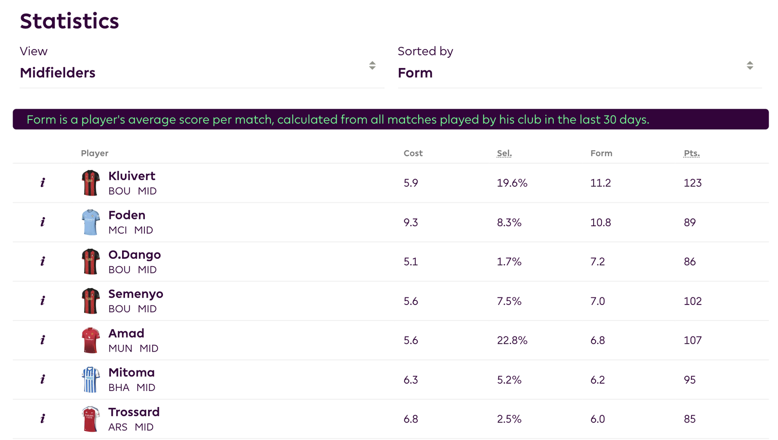 Before we reel out our favourite midfield picks for the next four weeks, let’s take a moment to reflect on the performances of our previous selections from Gameweeks 21 to 24: