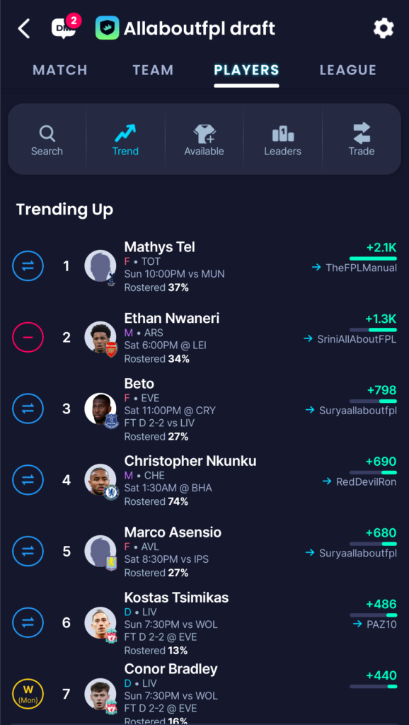 Trending Players on Sleeper Draft Fantasy Ahead of GW25: