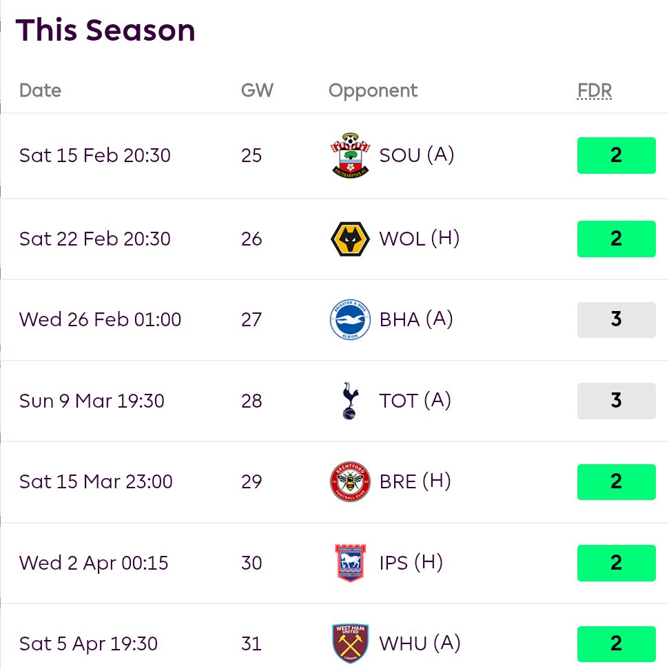 The upcoming fixtures are really good for Bournemouth from GW25 and up until GW31. Dango can be a really good long-term pick as well with GW25 as an excellent entry point.