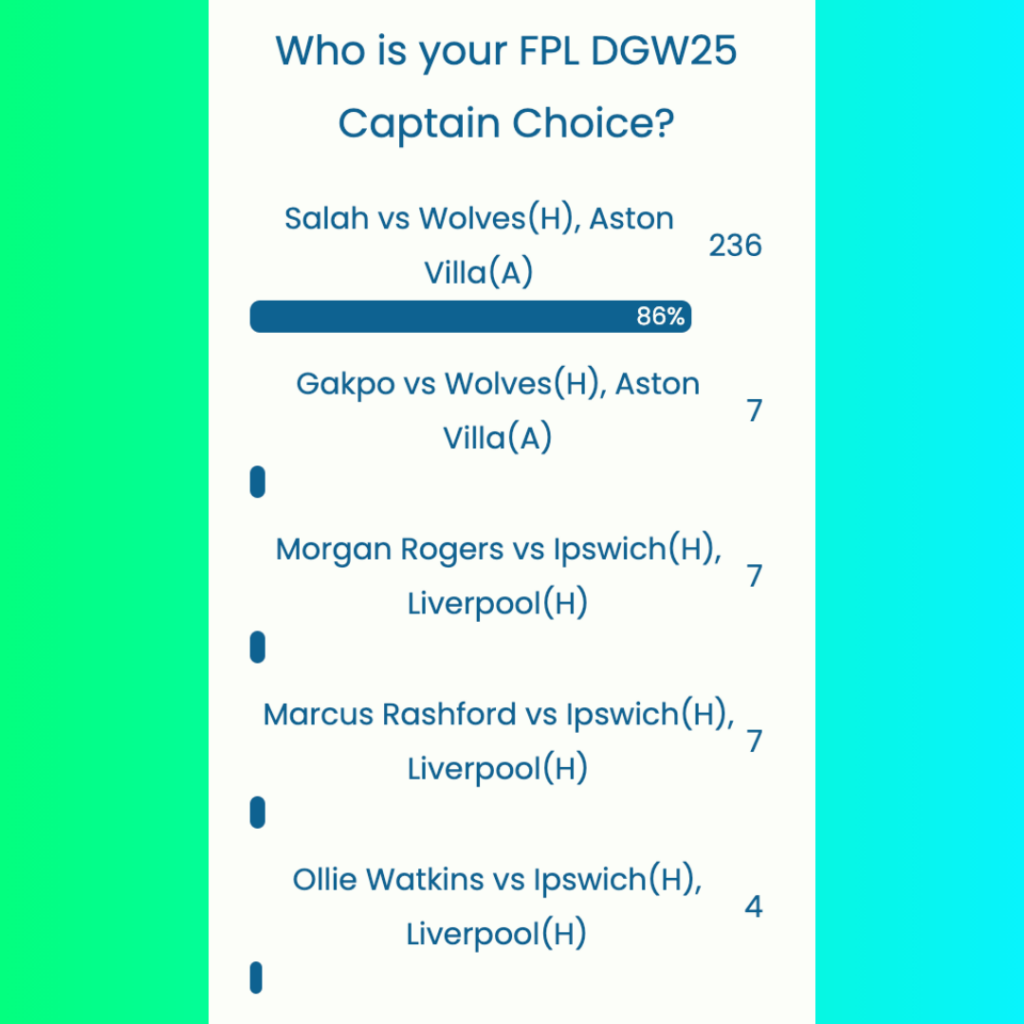 FPL GW25 Captaincy poll ~ Wisdom Of the Crowd