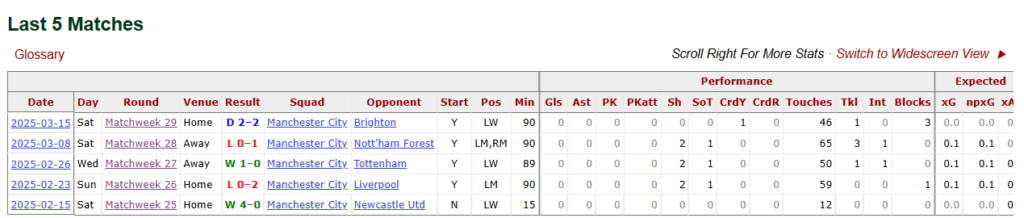 A few disappointing quirks in Doku’s last five games is shooting. The 22-year-old has a 63% successful dribble completion rate but could make an attempt of six shots in total in 374 minutes played.