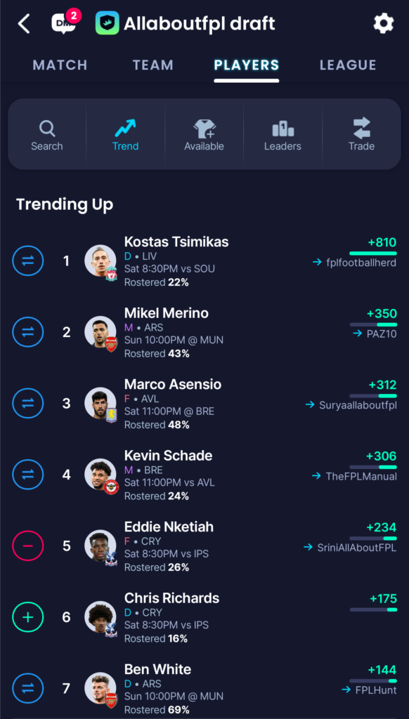 Trending Players on Sleeper Draft Fantasy Ahead of GW28: