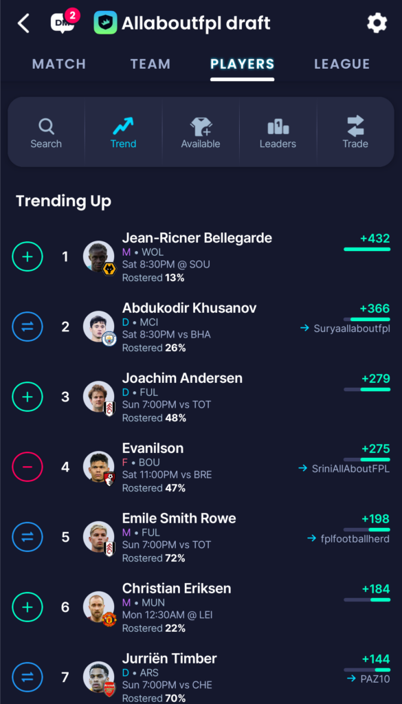 Trending Players on Sleeper Draft Fantasy Ahead of GW29: