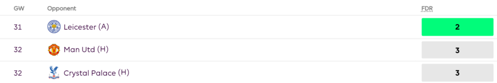 A key factor in Palmer’s output is the return of Nicolas Jackson. Before Jackson’s injury (GW1-23), Palmer averaged 7.3 points per game, compared to just 2.3 points per game during Jackson’s absence (GW24-29). With Jackson back in GW30, Palmer immediately returned to form with a 6-point haul, reinforcing his dependency on having a focal point to play off. Given his key role in Chelsea’s attack, penalty duties, and the numbers to back his potential, there’s little reason to sell him now. Holding onto Palmer looks like the right move, especially as Chelsea’s fixtures ease up.