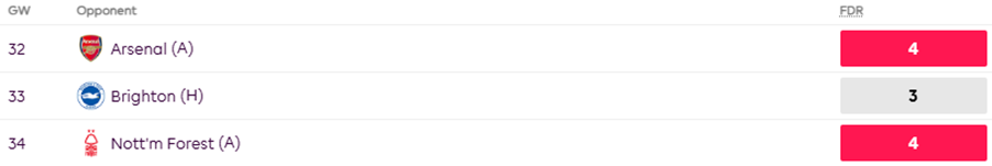 Pedro has a mouth-watering run of games all the way through GW36. If you’re planning for the run-in, he’s the kind of set-and-forget enabler that could pay off big.