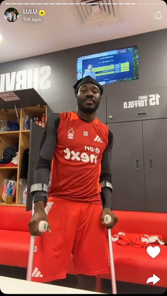The 27-year-old limped off with a calf issue against United, and while Forest haven’t given a timeline, his latest Snapchat says more than any press conference ever could: crutches and no walking in sight.
