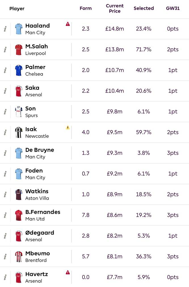 The top 13 most expensive players in FPL? All failed to return. ❌