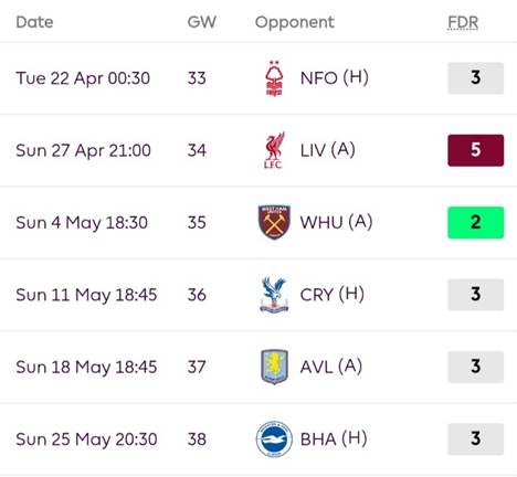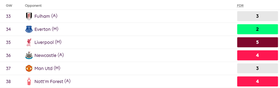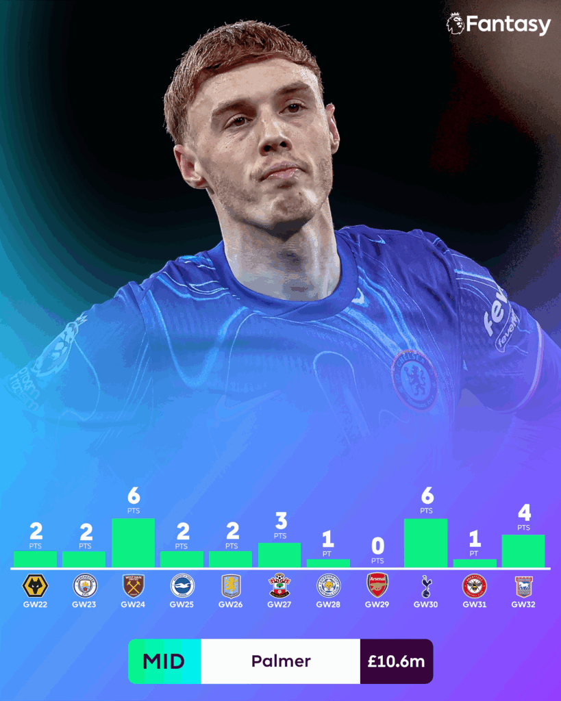 Chelsea’s upcoming fixtures aren’t doing him any favors either. Ranked 19th in the Fixture Difficulty Rating (FDR) from now till the end of the season, it’s less “blue wave” and more “blue Monday” vibes.
