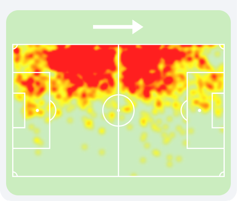- Cucurella is up against Everton as a punt. Even though Chelsea have not been great, Cucurella has been very attacking this season as seen from the heatmap below. He often picks up his spot as a striker in the far post which has made him get 4 goals and 2 assists this season. Everton’s attack form have also declined over the past few weeks as they have got only 5 goals from the last 7 games – Only Leicester City(2) have scored fewer goals in the entire league during this time.