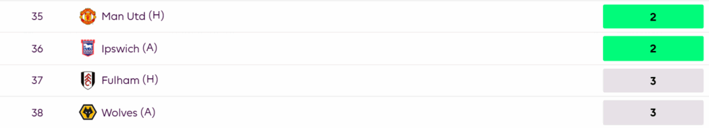 - Everton: They play 2 of the relegated teams IPS and SOU, along with FUL and NEW, in the last 4 GWs