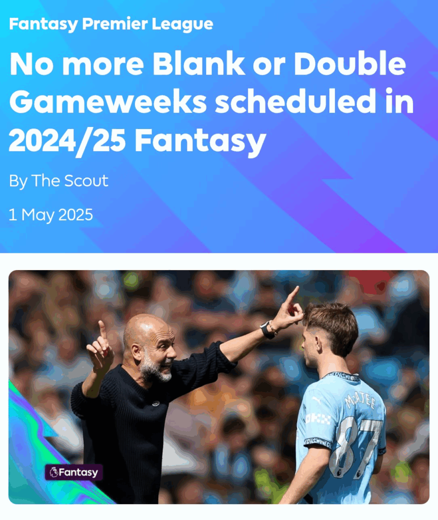Announcement- No more Double and Blank Gameweeks till the end of the season: