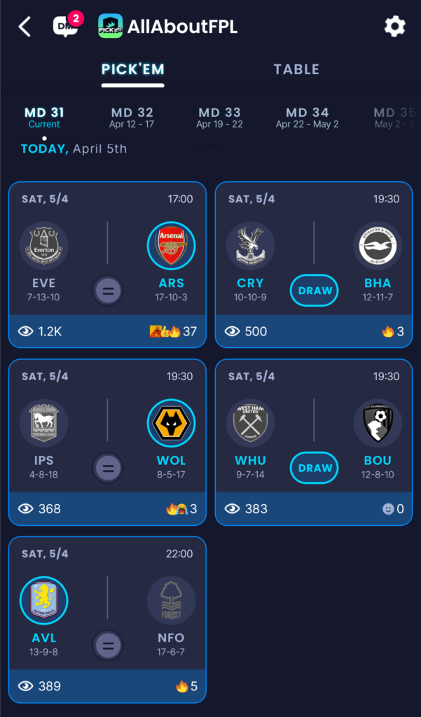 Premier League GW31 Predictions and Prizes- Sleeper Pick’em
