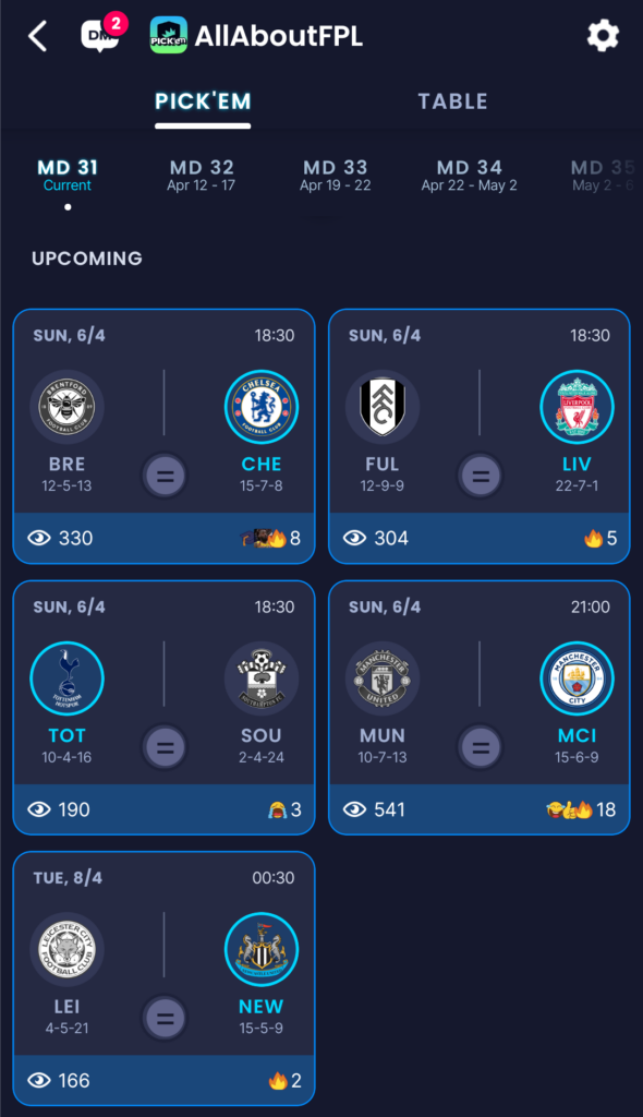 Don’t forget to join the Free to Play GW31 Sleeper Pick’em league and stand a chance to win some amazing prizes every single week!
