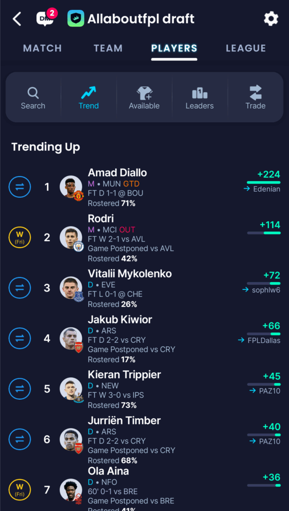 Trending Players on Sleeper Draft Fantasy Ahead of GW35: