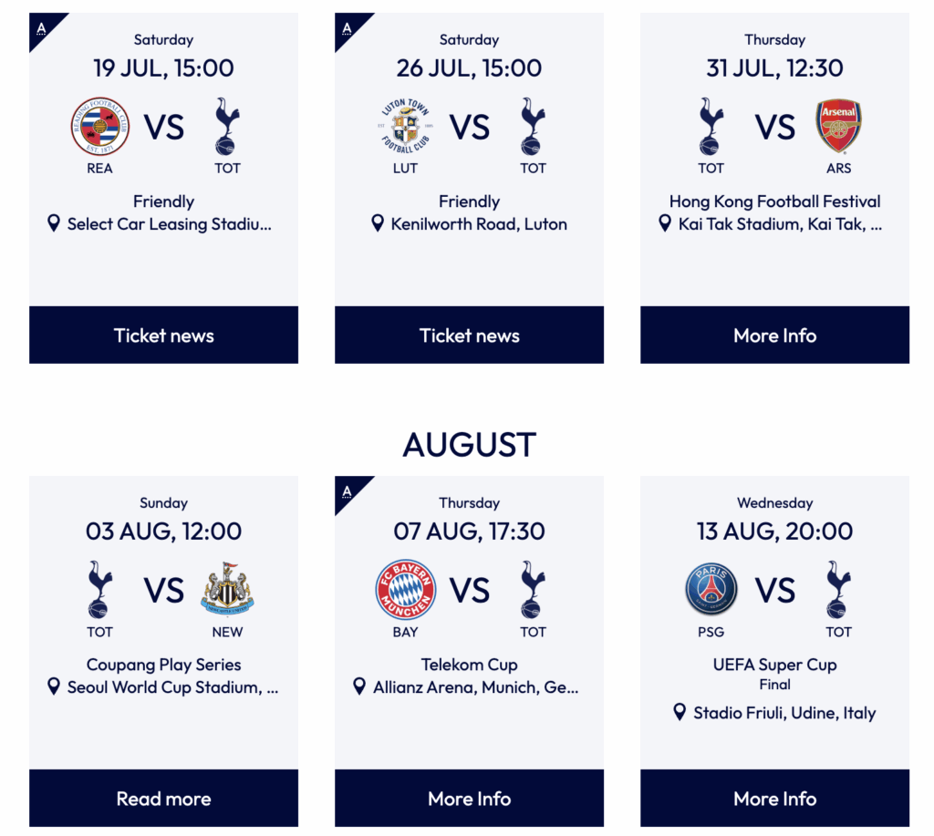 - 26 July: Spurs vs Luton Town, 3:00 PM