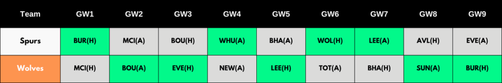 West Ham’s initial run of fixtures is fairly mixed, so AWB, should you choose him, could be another set-and-forget. His position in the starting XI looked fairly nailed towards the end of last season, but, as mentioned, we should keep an eye on the impact KWP’s signing has on AWB’s minutes…