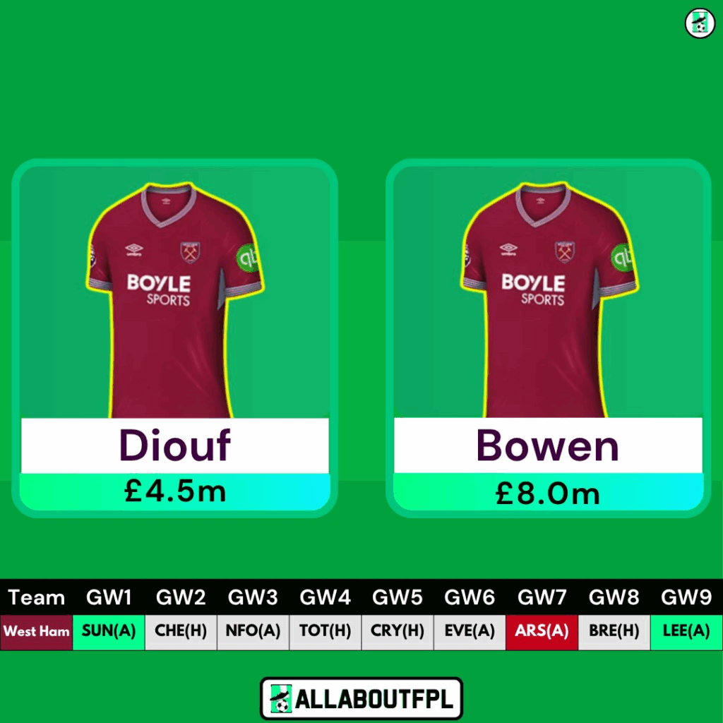 Diouf is the differential alternative to Wan Bissaka from West Ham, Diouf operates in the LWB role and was sensational in their last friendly, picking up an assist, and his cross led to the first goal. Last season, he had 10 attacking contributions.