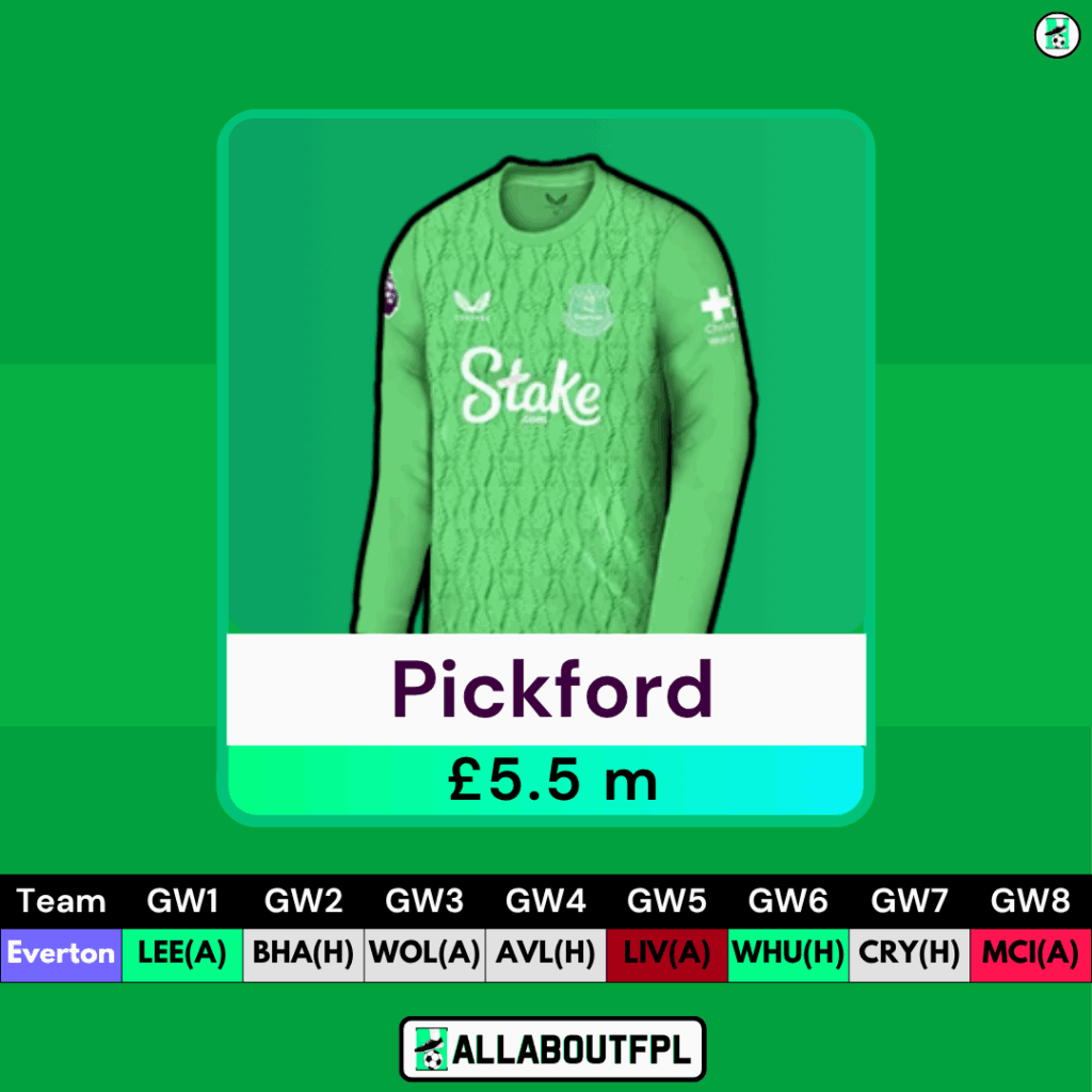 Under David Moyes, Everton finished last season in strong defensive form, and theyโll be eager to carry that momentum into the new campaign. At his current price, Pickford looks like a must-consider option for fantasy managers wanting safe hands and serious upside from their goalkeeper slot.