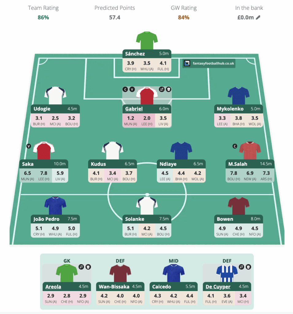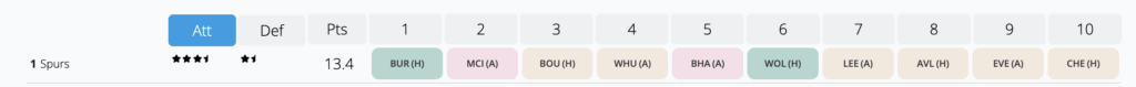 - Kudus and Solanke are both in this draft. Spurs fixtures are great, and it’s worth doubling up on Spurs attack. Solanke picked up 9 goals and 5 assists, his expected goal involvement of 0.50 xGI/90 last season is great too.