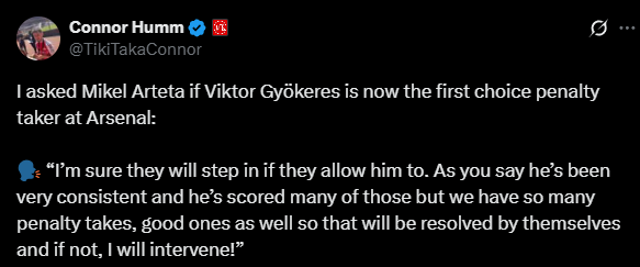 Notes: Gyokeres has a 34-4 penalty record in his career, which suggests that he is a good penalty taker. In the previous seasons, Saka was on penalties(sometimes he gave it up to Odegaard). This time, it could be a two-horse race with Gyokeres also in the mix. Arteta didn’t give much when asked about it, but it looks like Gyokeres could take some penalties off Saka if not all. Watch out for pre-season games.