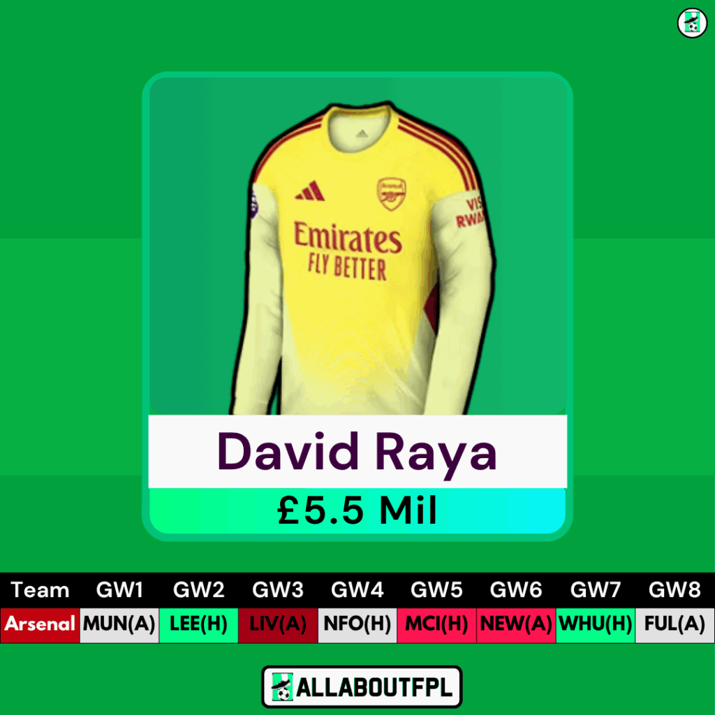 Tied for the Golden Glove with 13 clean sheets, Raya finished third among goalkeepers in FPL points. At 5.5M, he offers a budget-friendly route into Arsenalโs defence, especially with Gabriel and Saliba both priced at 6.0M. While Kepa lurks as backup, Raya is expected to retain the No.1 spot. That said, Arsenalโs opening fixtures are tricky โ they face MUN, LIV, MCI, and NEW in the first 7 Gameweeks.