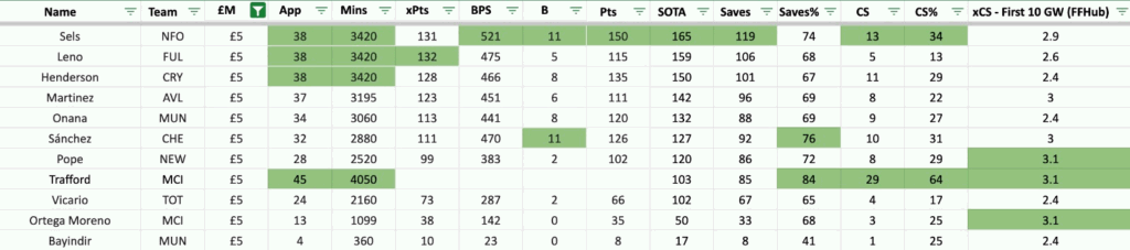 Clean sheets also saw a rebound – with 178 clean sheets across the league in 2024/25, up from 157 in 2023/24, though still short of the 207 in 2022/23. While goalkeepers typically score within a narrow range, the top 7 keepers were separated by just 38 points – the devil lies in the details. For instance, Pickford scored 158 points while Onana, despite a tough season for United, managed 120, barely a point per game less. With such tight margins, price points and fixtures become even more crucial in determining the best picks. Letโs break down the goalkeeper pool across price brackets.