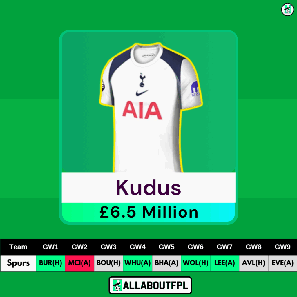 A versatile attacker with unlucky finishing numbers last season, Kudus could thrive in a more attacking Spurs setup. Spurs’ early fixtures are strong – Burnley (H), Bournemouth (H), West Ham (H), Wolves (H) and Leeds (A), making him an appealing early-season punt. Solanke has not featured in any of the friendlies so far (including the one against Munich last night), Son is off the LA and Maddison is injured so Kudus could be the Spurs attacker in your side.