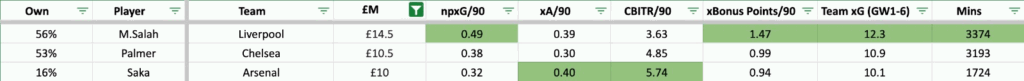 Both were lethal last season but face uncertainty in a United team that struggled. Without penalties and with tricky early fixtures, they may be worth monitoring rather than starting with. Cunha had the highest npxG+xA/90 though in this group at 0.57. With Sesko also joining the Manchester United attack now, it will definitely be a sight to watch with the new front 3 worth 200m.