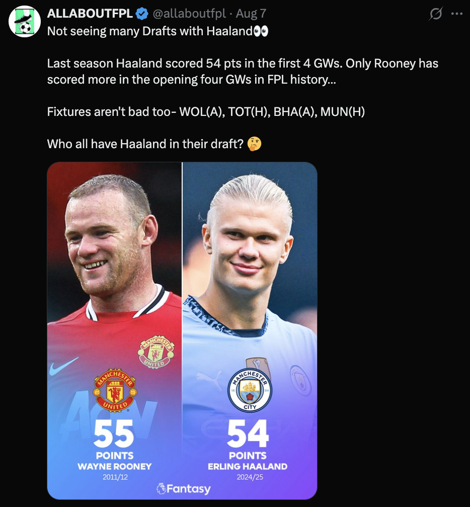 - His price is a bit off-putting after his record last season, and with most going for a duo of Palmer & Salah and filling up their squads with the Mid-Priced forwards, Haaland may remain a Differential until he explodes at the beginning of the season.