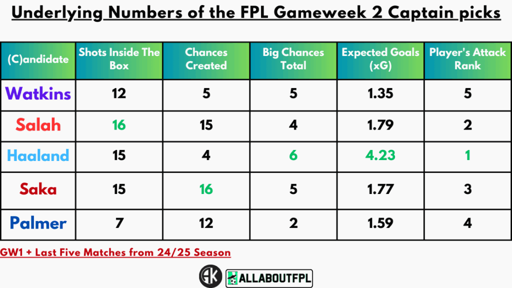 Underlying Numbers of the FPL Gameweek 2 Captain picks