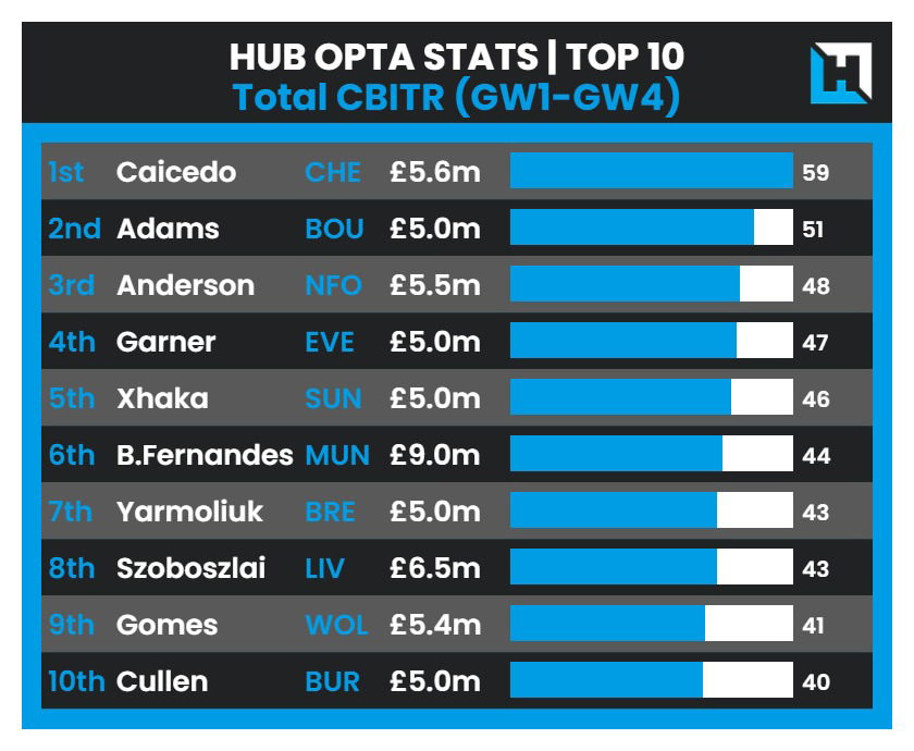 Caicedo has delivered a consistent and substantial amount of points so far this season. Among Midfielders, Caicedo has made the most of the new Defensive Contributions points system in this year’s FPL.