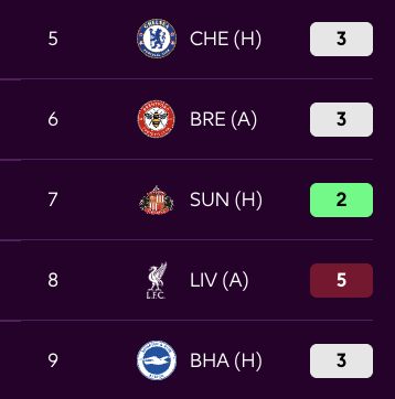 Despite a slower start, the Hammers shouldn’t be ignored. A late win over NFO restored confidence as Potter’s tweaks took shape. GW8 vs Brentford is a fair entry, with Leeds and Burnley in between.