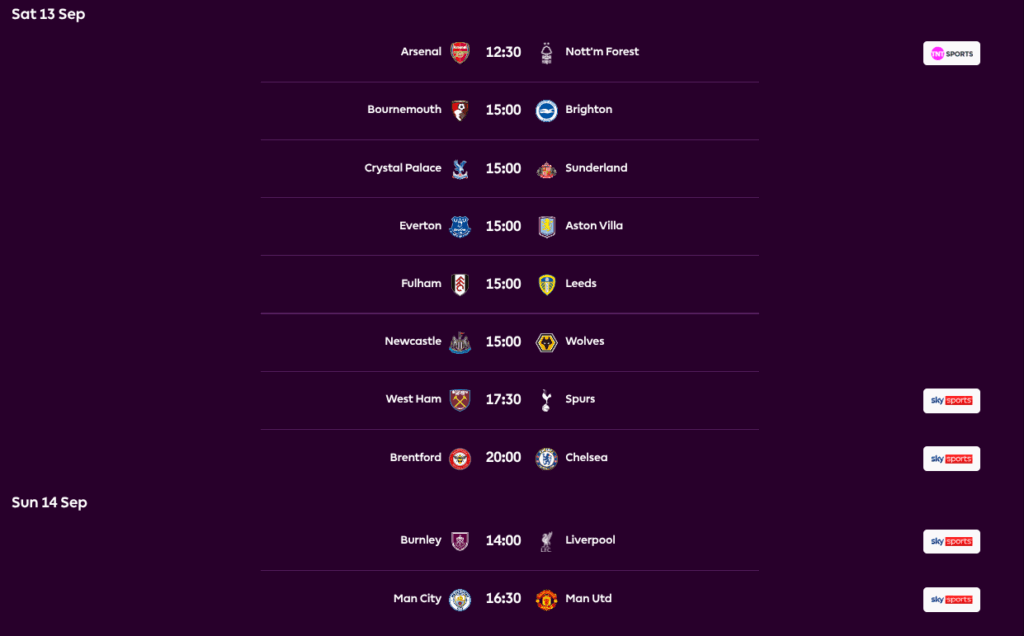 FPL GW4 Fixtures