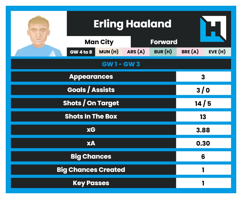 Haaland Stats so far this season(Rank in the league):