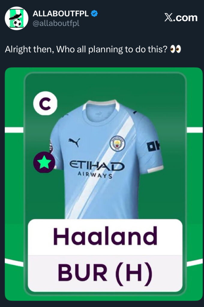 Haaland (14.3m), Richarlison (6.7m), and JP (7.8m) complete the team.