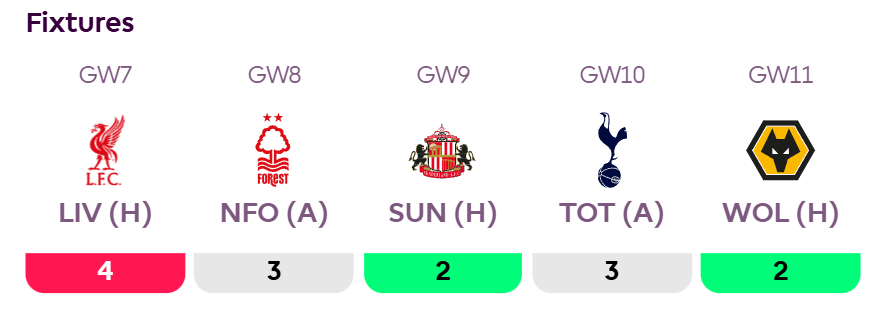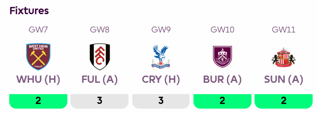 - Invest in Arsenal’s defensive assets with their favorable run of fixtures between GW7 and GW11