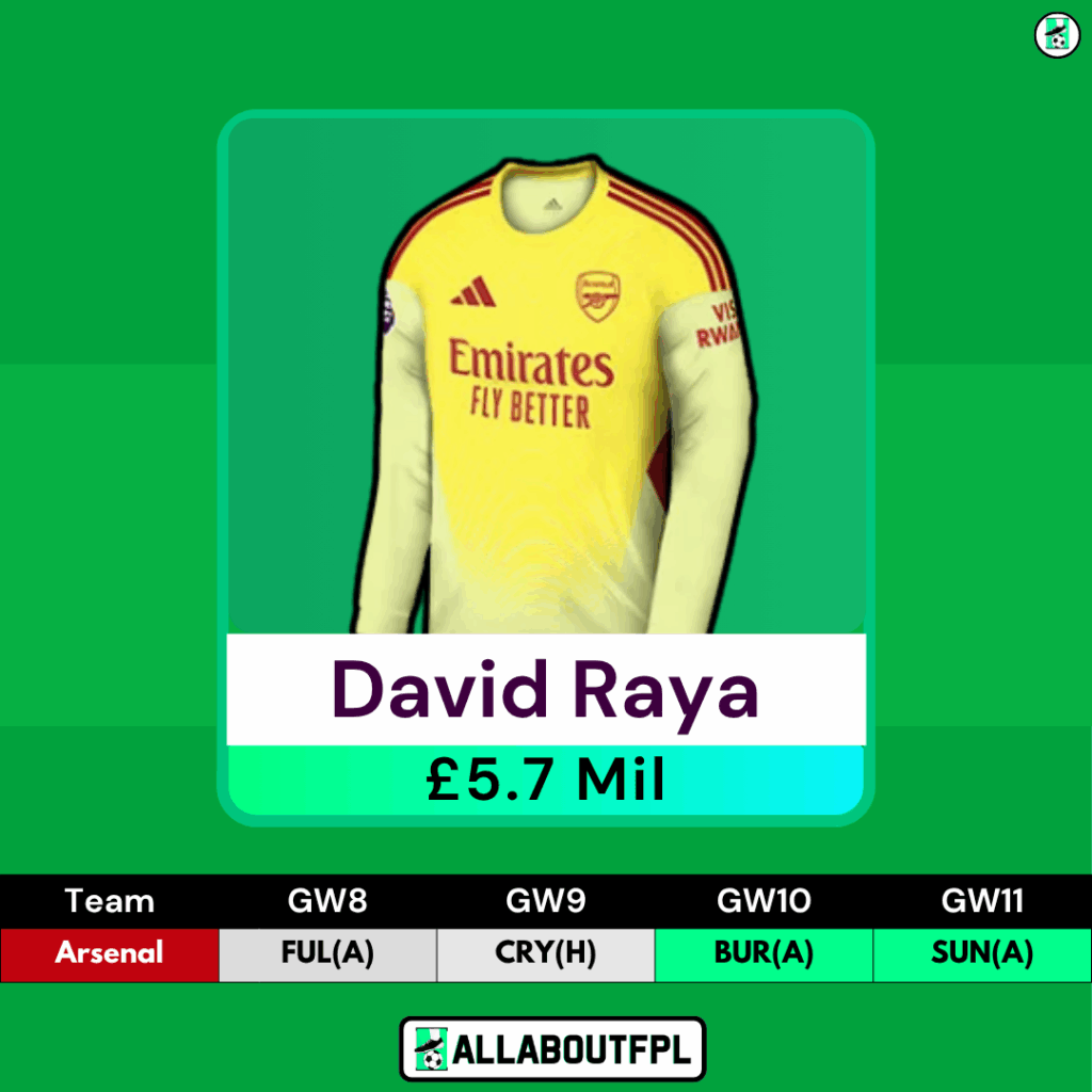 However, he is the most expensive goalkeeper option at 5.7m and one of the most popular with 27.8% TSB. Regardless, Arsenal have a favorable fixture run until GW19, barring their London derbies against Tottenham (GW12) and Chelsea (GW13).