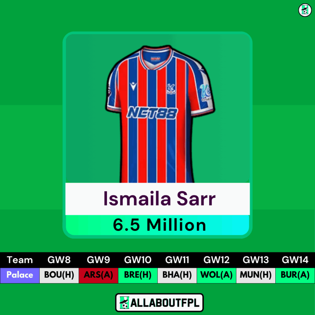 - Ismaila Sarr is a pick who has gone under the radar in FPL this season, mainly due to the 2 games he missed due to injury. He has 3 goals, 1 assist from 5 games so far this season, and his underlying data is also really good.