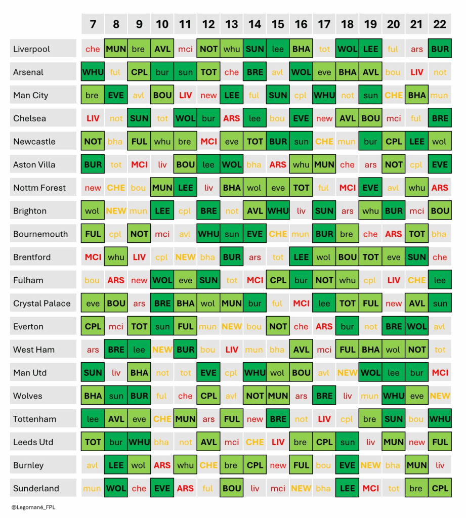 - GW13 is a mega fixture swing for Liverpool, Man City & Newcastle. Liverpool face West Ham (A), Sunderland (H), and Leeds (A). City play Leeds (H), Fulham (A), and Sunderland (H). Newcastle take on Everton (A), Spurs (H), and Burnley (H).