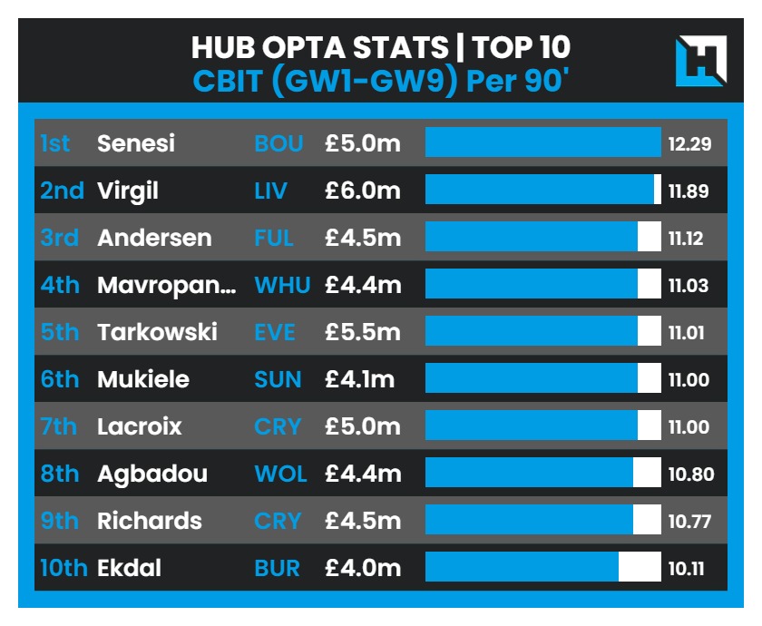 - Lacroix averages close to 11.00 Defcon per 90, and last week got 21 Defcons against an aerially dominant Arsenal team. This week, he would be doing the same against set-piece and long throw specialists, Brentford. He has already got the extra points in 5 of the 9 Games so far.