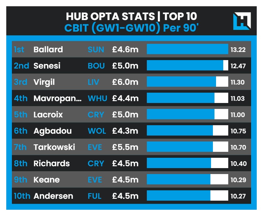 Van Dijk is also good for DEFCON with an average of 11.30 DEFCON per 90 minutes(3rd Highest among Defenders) and has hit the DEFCON threshold in 6/10 games so far.