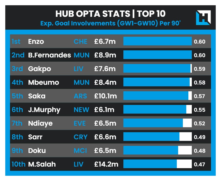 The underlying numbers suggest a haul is imminent. While Arsenal’s fixture run gets tougher after GW11, with trips to Spurs and Chelsea on the horizon, Saka remains a dependable pick for this week’s away fixture at Sunderland before managers consider switching to a Manchester United asset in GW12.