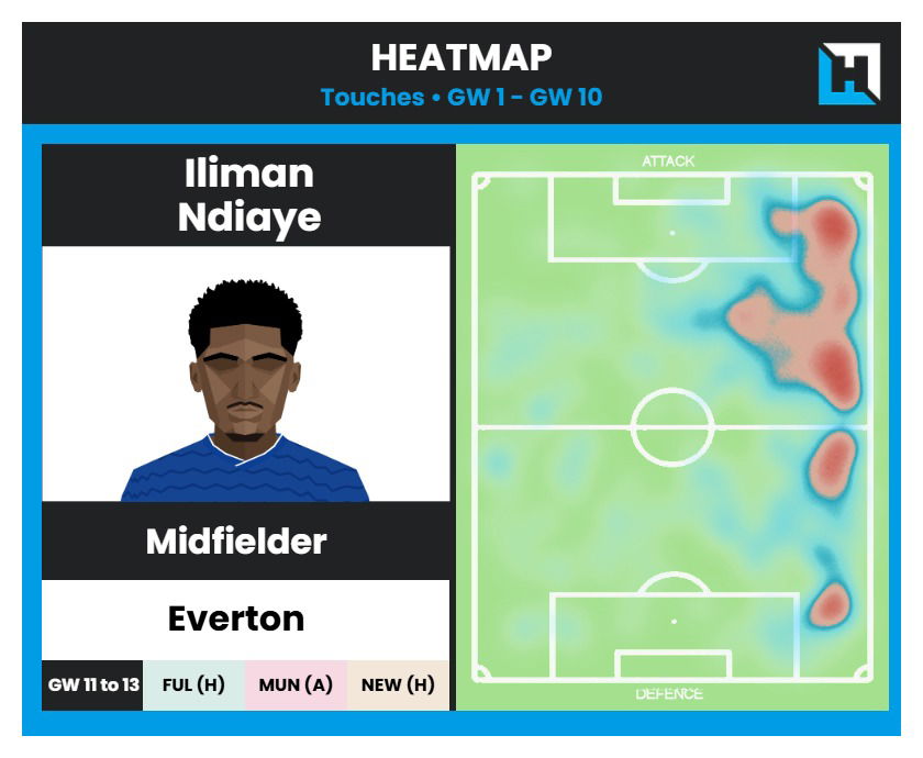 Just like West Ham, Everton also don’t have the best fixtures going forward, but this week presents a great match up for Iliman Ndiaye. He’s playing a Fulham team that has conceded 4 goals from the right wing.