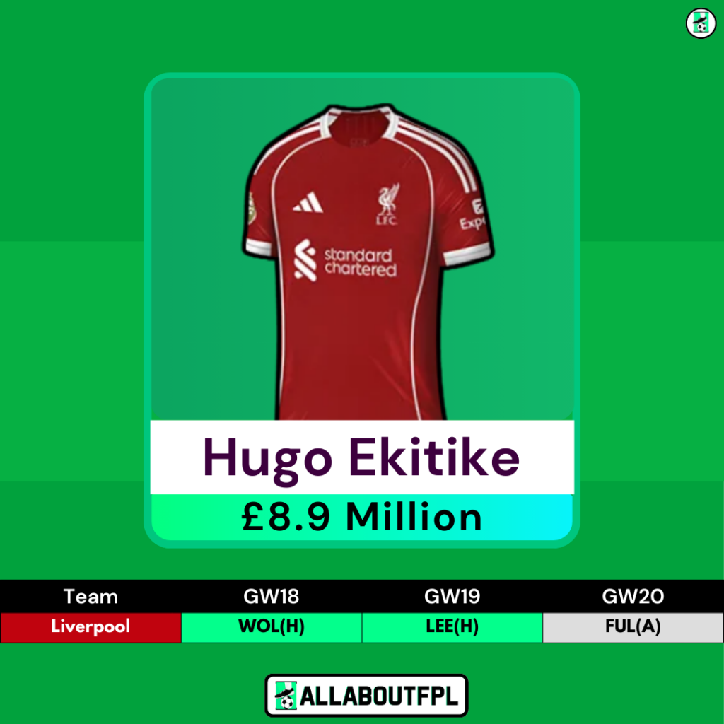 Hugo Ekitiké (£8.9m) – FWD, Liverpool – 28.2% TSB
