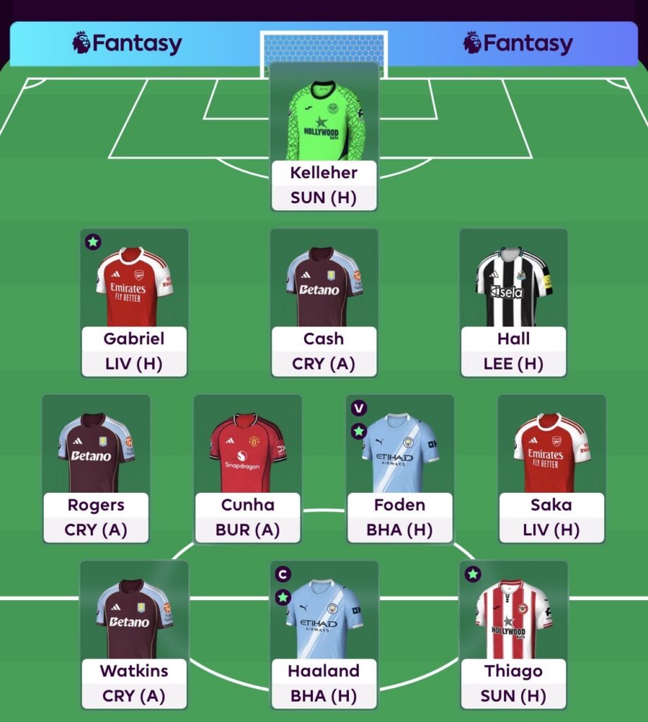 Watkins (8.7m), Haaland (15.1m) and Thiago (6.9m) complete the team for FPL GW21…