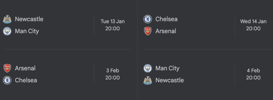 Note: The same is the case for Newcastle and Chelsea too, if they beat Man City & Arsenal respectively in the Carabao Cup semi-finals, their GW31 fixture will have to be postoponed but that cannot be preponed into GW26 because both teams are likely to be involved in the UCL knockouts. Chelsea are currently 12th & Newcastle are 13th in the UCL standings.