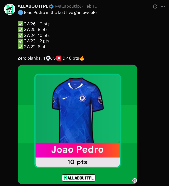 Thanks for reading the “FPL GW27 Scout Picks” blog. Keep checking allaboutfpl.com for regular blogs. Also, follow our 220,000+ community on Instagram, Threads, Facebook, and Twitter to stay updated on regular Posts and FPL updates.